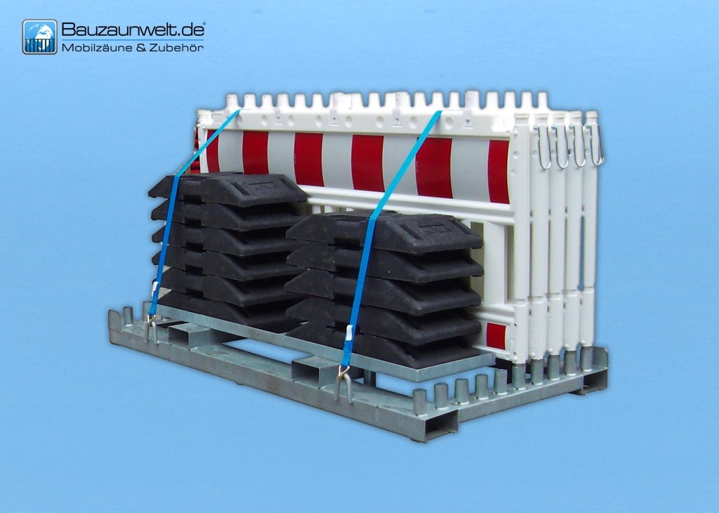 Kompletny zestaw ogrodzeń odgradzających do natychmiastowego użycia, ponieważ dostarczany jest w całości zapakowany, np. do celów transportowych. Np.: granice placów budowy i ochrona prywatności, do oddzielenia ścieżek pieszych i rowerowych, do imprez lub targów do oddzielania i prowadzenia zwiedzających i uczestników itp., składające się z: