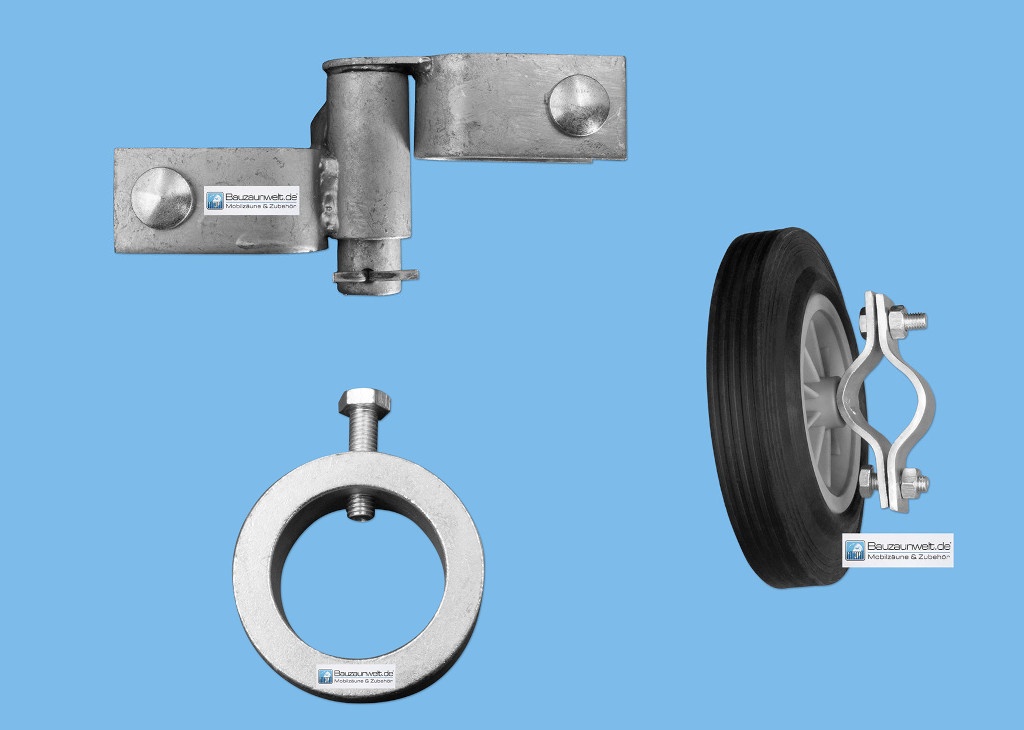 Nasz przegub obrotowy w połączeniu z kołem jezdnym tworzy tzw. „zestaw bramowy” do ustawiania drzwi ogrodzeniowych i bram przejściowych w systemie ogrodzeń mobilnych.