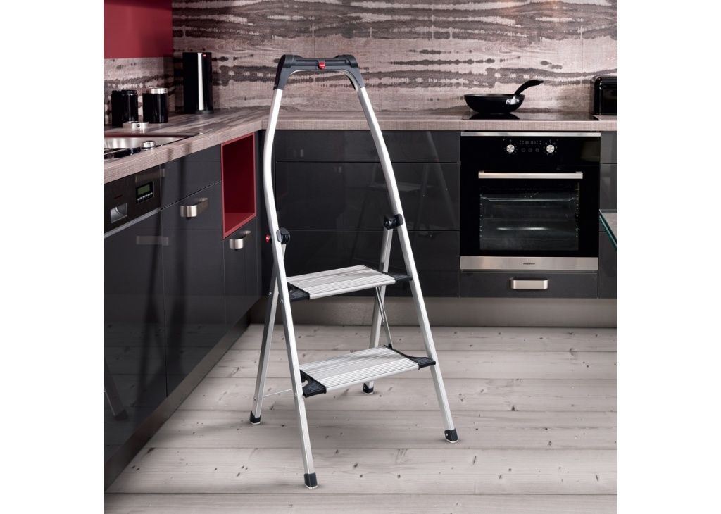 Die Komfort-Trittleiter aus Aluminium mit Soft-Grip- Sohle für optimalen Stand auf verschiedenen Böden. Hochgeschwungener Aluminium- Sicherheitsbügel zum Festhalten und Anlehnen Praktische Ablageschale Extra große, rutschfest geriffelte Aluminium- Stufen für optimalen Steh-Komfort Fuß mit Soft-Grip-Sohle für optimale Standund Rutschsicherheit auf verschiedenen Fußböden, wie z. B. Parkett, Teppichböden und Fliesen Treppenförmige Stufen-Anordung für schienbeinschonende Nutzung Belastbar bis 150 kg