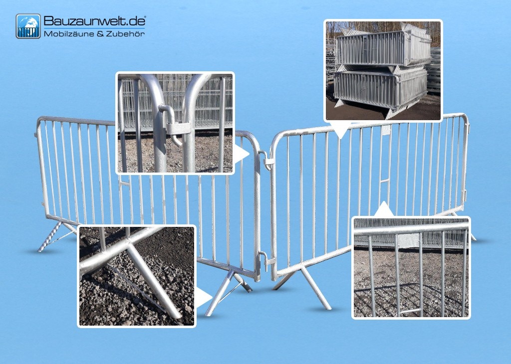 Nasze barierki wykonane są ze stali cynkowanej ogniowo i łączone są ze sobą za pomocą haków i oczek.W ofercie posiadamy szczególnie ciężką wersję (ok. 20,0kg), uchwyt, pusty szyld reklamowy oraz krzyżulce na stopach , co zapewnia dodatkową stabilność i gwarantowaną trwałość.