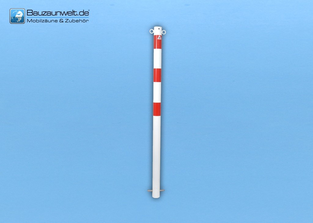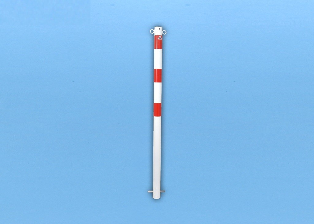 Dostępne z kotwą gruntową do osadzania w betonie lub płytą podstawy do kołkowania, cynkowaną ogniowo i malowaną na biało z trzema paskami świetlnymi odbijającymi światło czerwone.