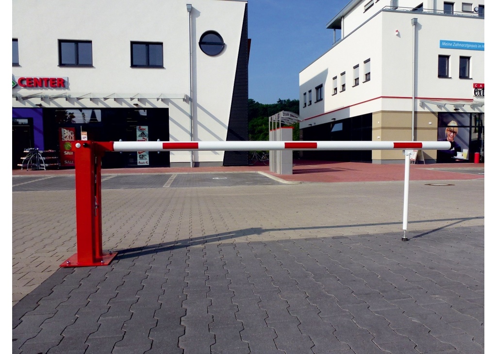 Ocynkowana ogniowo i malowana proszkowo na kolor czerwony, blokowana śrubami przy otwarciu i zamknięciu bariery.