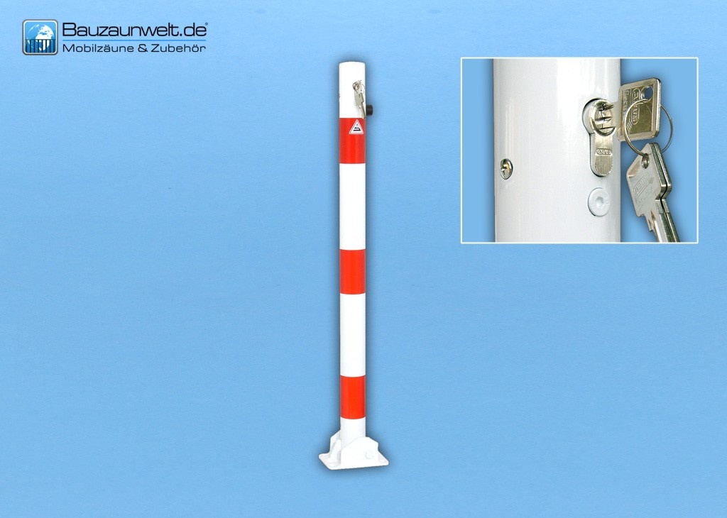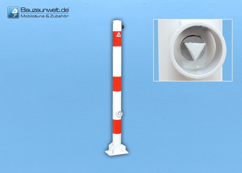 Słupek odgradzający 76 mm składany z płytą podstawy, dostępny w czterech różnych wersjach.
