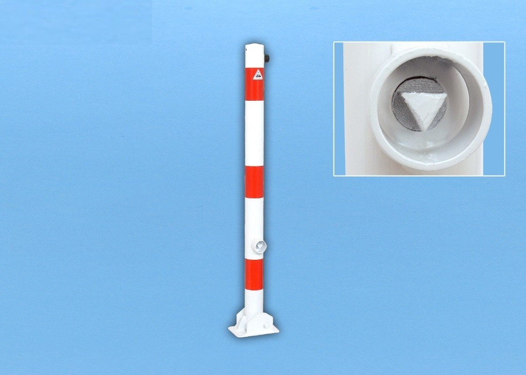 Opcjonalnie z zamkiem trójkątnym, zamkiem bębenkowym profilowanym i 3 kluczami do mocowania kołków lub do osadzania w betonie za pomocą tulei szlifowanej (ok. 400 mm pod ziemią).