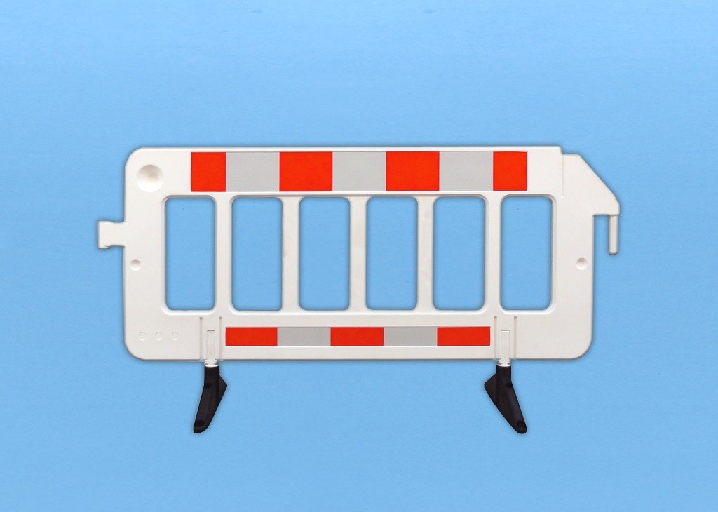 Ogrodzenie posiada efektowną kolorystykę (pokrytą z jednej strony folią odblaskową 3M Typ 1) poprawiającą efekt wizualny. Nóżki można obracać i są wykonane w 100% z materiału pochodzącego z recyklingu.