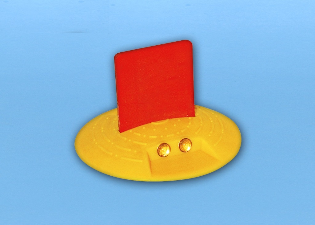 Oznaczenie podłogowe wykonane z polipropylenu z widoczną powierzchnią o średnicy 100 mm i elastyczną gumową flagą stanowi trwałą i ekonomiczną alternatywę do oznakowania parkingów oraz oznakowania firmowych powierzchni magazynowych i magazynowych.