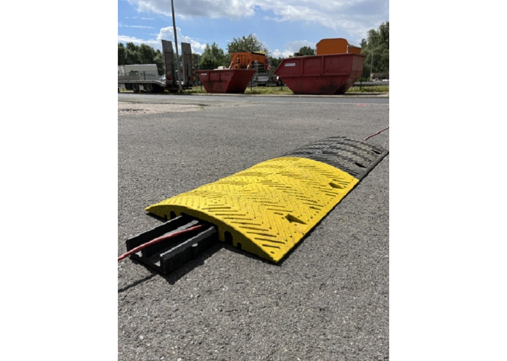 Most kablowy wykonany z PCV pochodzącego z recyklingu, pochodzącego z osłon kabli, służy do ochrony i bezpiecznego układania wszelkiego rodzaju kabli, węży i rur.