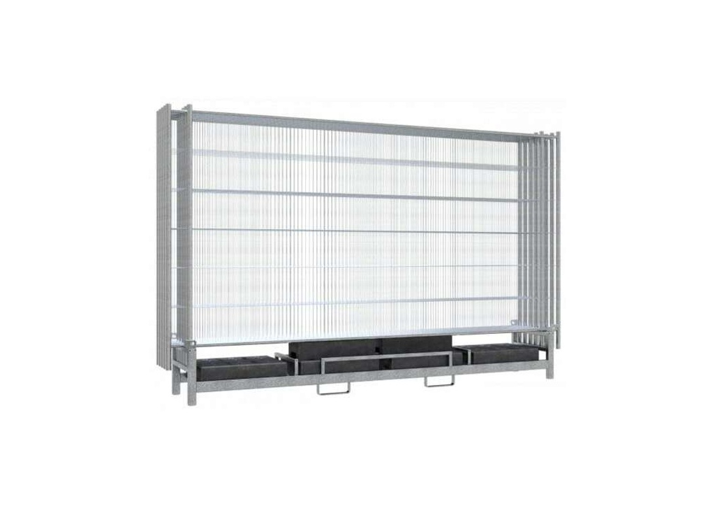 MTP 30 spełniający normę CE dł. 3,53 x szer. 1,14 m na 30 ogrodzeń budowlanych , 31 stóp ogrodzeń budowlanych z betonu lub tworzywa sztucznego, ze stali (cynkowane ogniowo), masa łącznie z ładunkiem maks. 1800 kg długość przesuwu wideł w poprzek 1,20 m, przejechać wzdłuż 2, 00 m