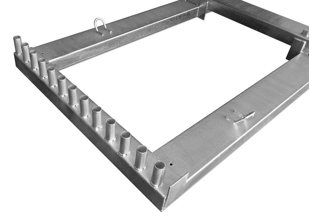 Elementy wkładane są na platformę jeden za drugim, zmiennie z jednej strony w wyznaczone miejsce, tak aby nie mogły zostać uszkodzone przez wózek widłowy podczas transportu lub przechowywania. Oczywiście TP26 oferuje mocowania na widły wózka widłowego po bokach, co znacznie zwiększa efektywność logistyki i transportu.