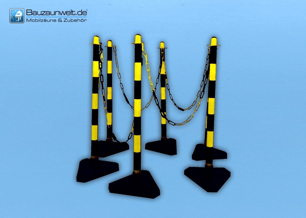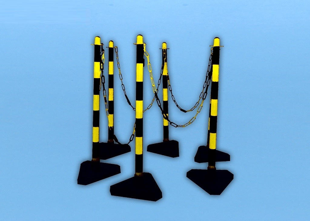 Przenośny zestaw stojaków na łańcuchy o dużej stabilności, przeznaczony do tymczasowej bariery, odpowiedni do użytku wewnątrz i na zewnątrz. Zestaw można szybko i łatwo rozłożyć oraz przechowywać, oszczędzając miejsce.