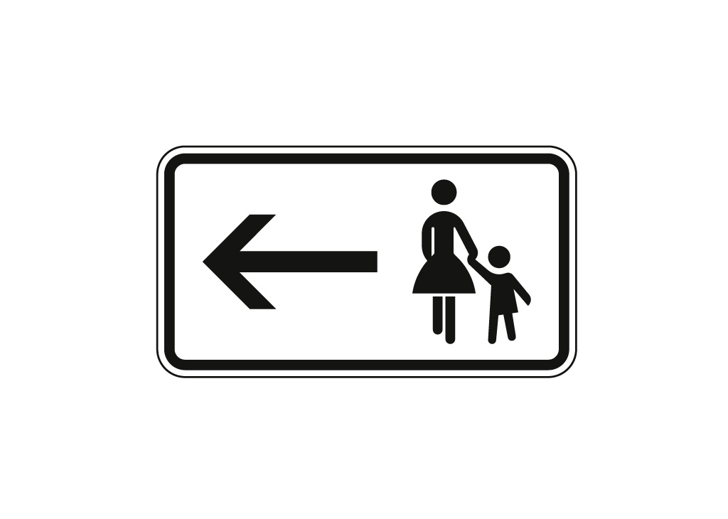 Piesi korzystają z chodnika naprzeciwko, skierowanego w prawo, 330 x 600, płaska 2mm, RA 1A
