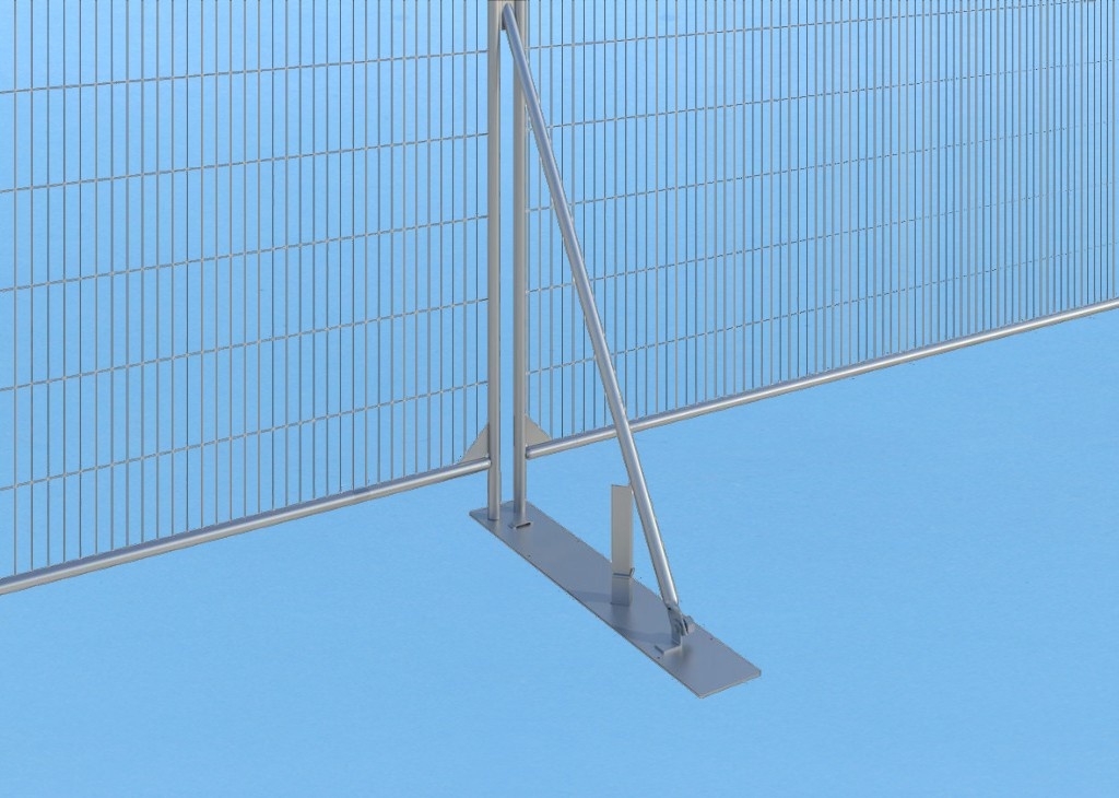 Wspornik ogrodzenia budowlanego z dużą płytą, cynkowany ogniowo