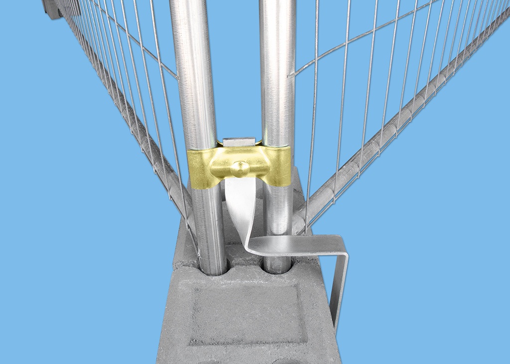 Zabezpieczeniem podnoszącym płot budowlany jest płaski stalowy wspornik umieszczony wokół podstawy. Na górnym końcu elementu zabezpieczającego pola ogrodzenia mobilnego mocowane są do zabezpieczenia przed podniesieniem za pomocą obejmy łączącej (patrz akcesoria).