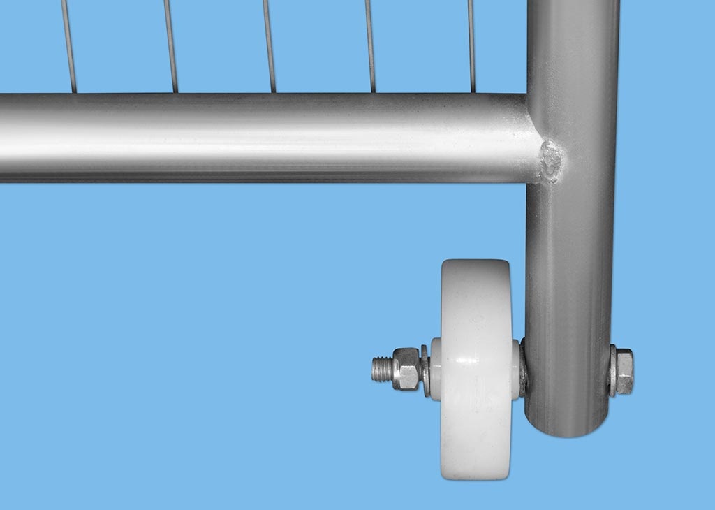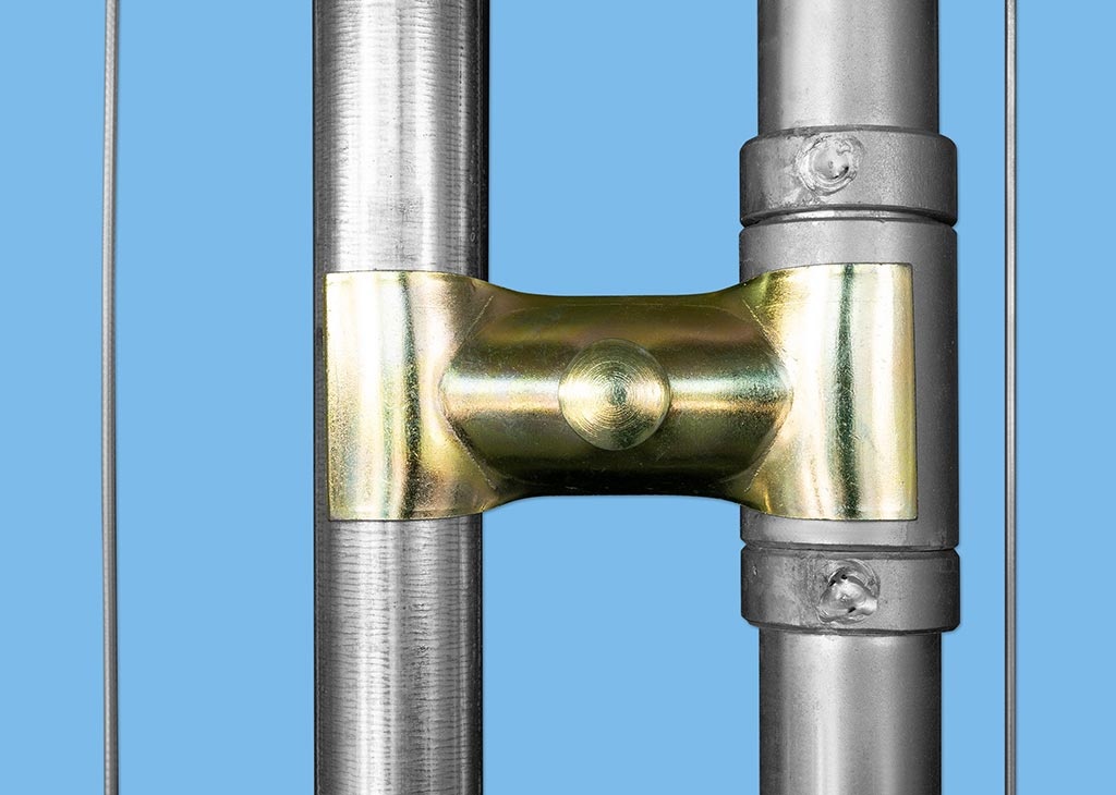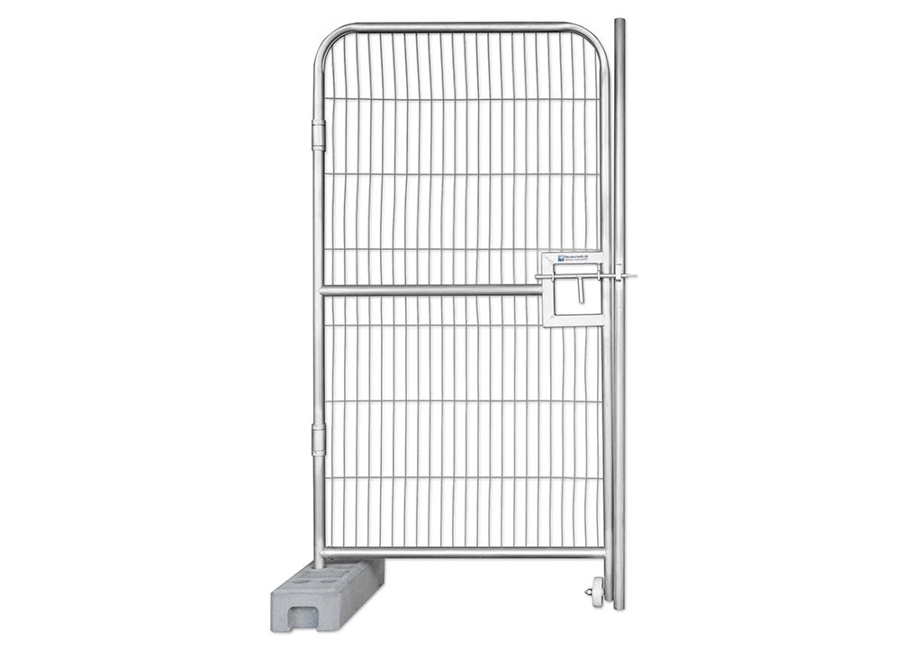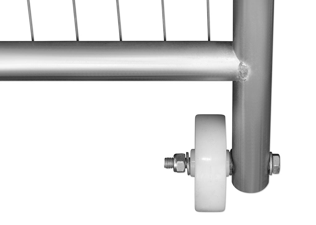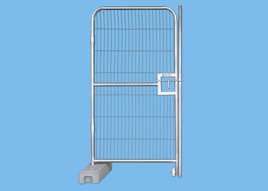 Aby umożliwić stabilny obrót, do rury pionowej przymocowane są dwa złącza obrotowe, które łączą bramę z sąsiadującym polem ogrodzenia budowlanego.
