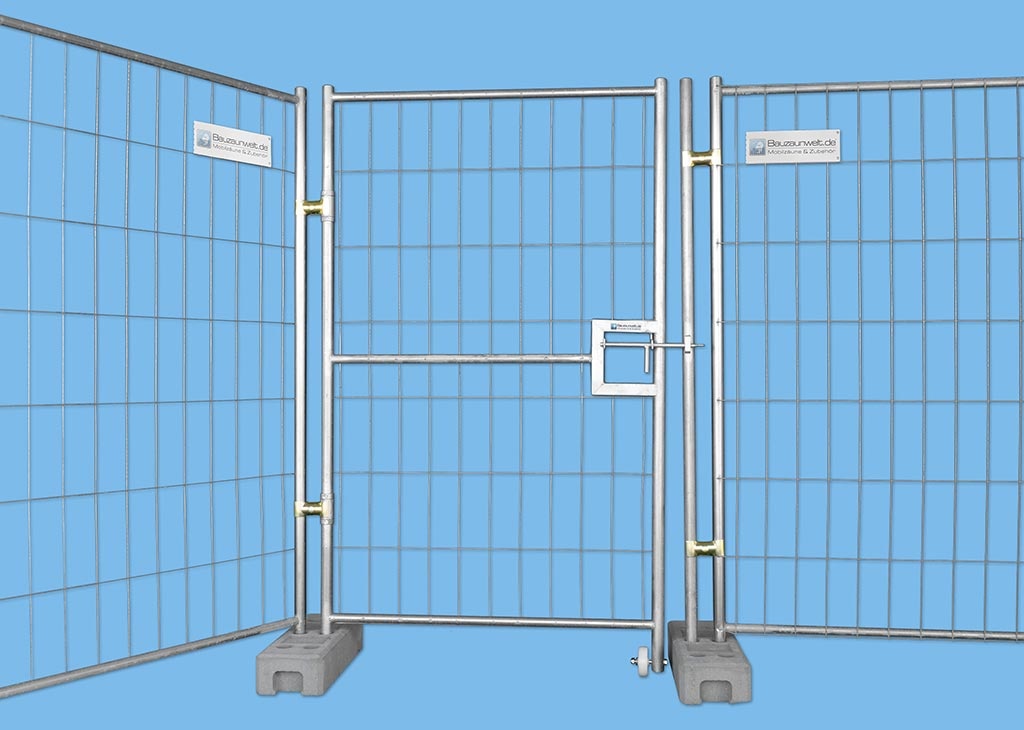 Aby umożliwić stabilny obrót, do rury pionowej przymocowane są dwa złącza obrotowe, które łączą bramę z sąsiadującym polem ogrodzenia budowlanego.