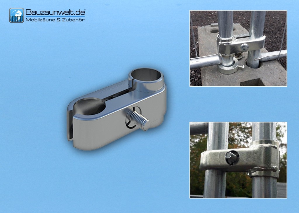 Nasz przegub obrotowy w połączeniu z płotem budowlanym i kołem jezdnym tworzy tzw. „zestaw bramowy” służący do montażu drzwi ogrodzeniowych i bram przejściowych w systemie ogrodzeń mobilnych.