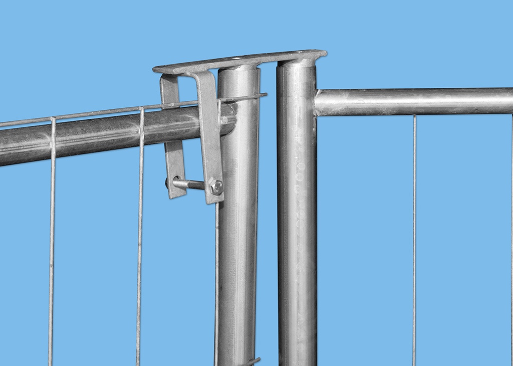Nasz przegub obrotowy w połączeniu z kołem jezdnym tworzy tzw. „zestaw bramowy” do ustawiania drzwi ogrodzeniowych i bram przejściowych w systemie ogrodzeń mobilnych.